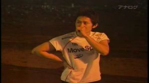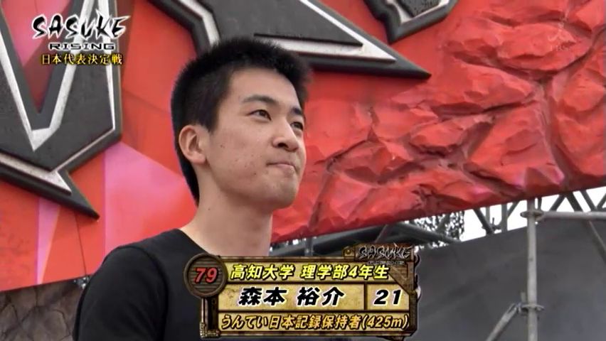 The use of previous showing determining start position began in Sasuke 3, where comedian Ōmori Akira (大森晃) landed the #100 based on reaching the Final Stage in the previous two tournaments. He once more showed his prowess by advancing to the Final Stage once again, setting a record for consecutive Final Stage appearances that stood for 5 years. The following tournament, he landed #99, and his performance began to take a sharp dive, beginning a string of consecutive First Stage failures before taking a long hiatus from the show. Anyway, following Sasuke 3, there was someone else who wore #100 for his performance…